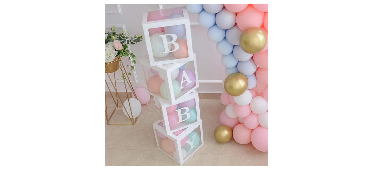 These fun decor items can be filled with balloons, flowers or whatever you’re using for decorations. The boxes are prefolded and easy to set up. Many parents love these boxes so much that they use them as nursery decorations after the baby shower.